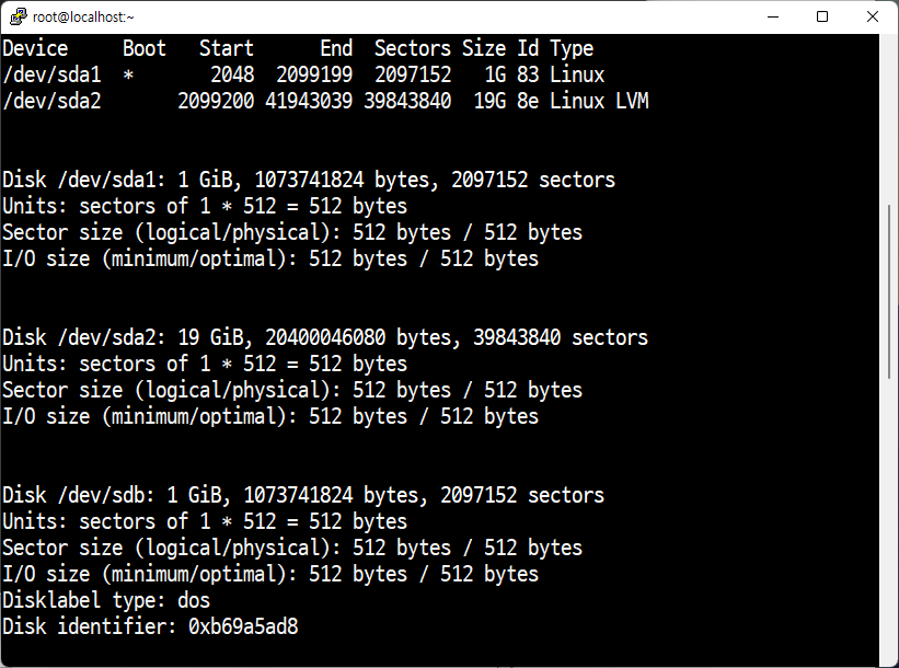 - 명령어(fdisk /dev/sda)로 목록 확인 가능