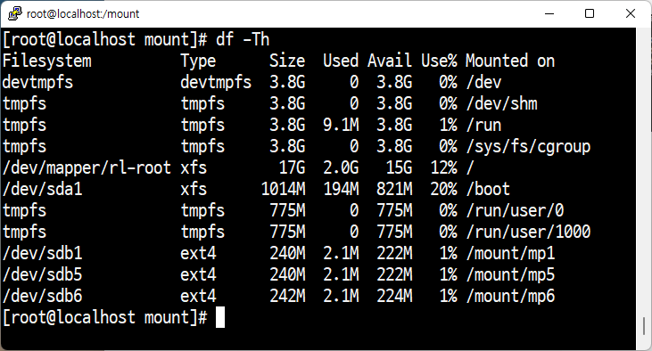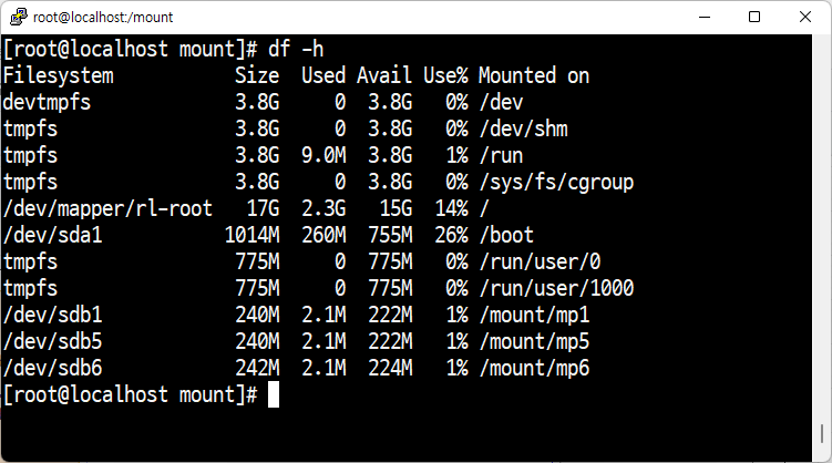 /mount/mp1, /mount/mp5, /mount/mp6 에 마운트