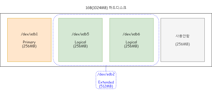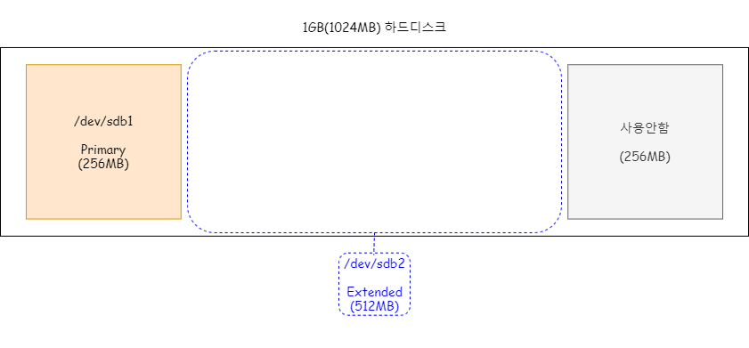- Primary, Extended Partition의 경우 1~4를 붙여 표현(ex sdb1, sdb2 ...)