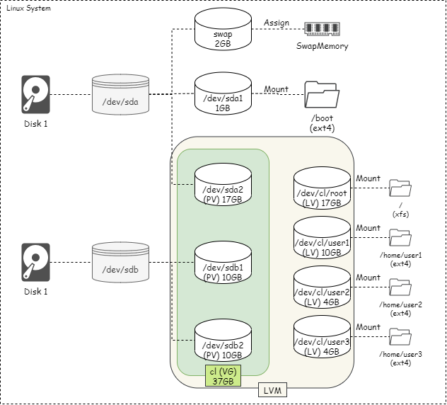 - LG(Logical Volume) - 논리 파티션 분할 공간